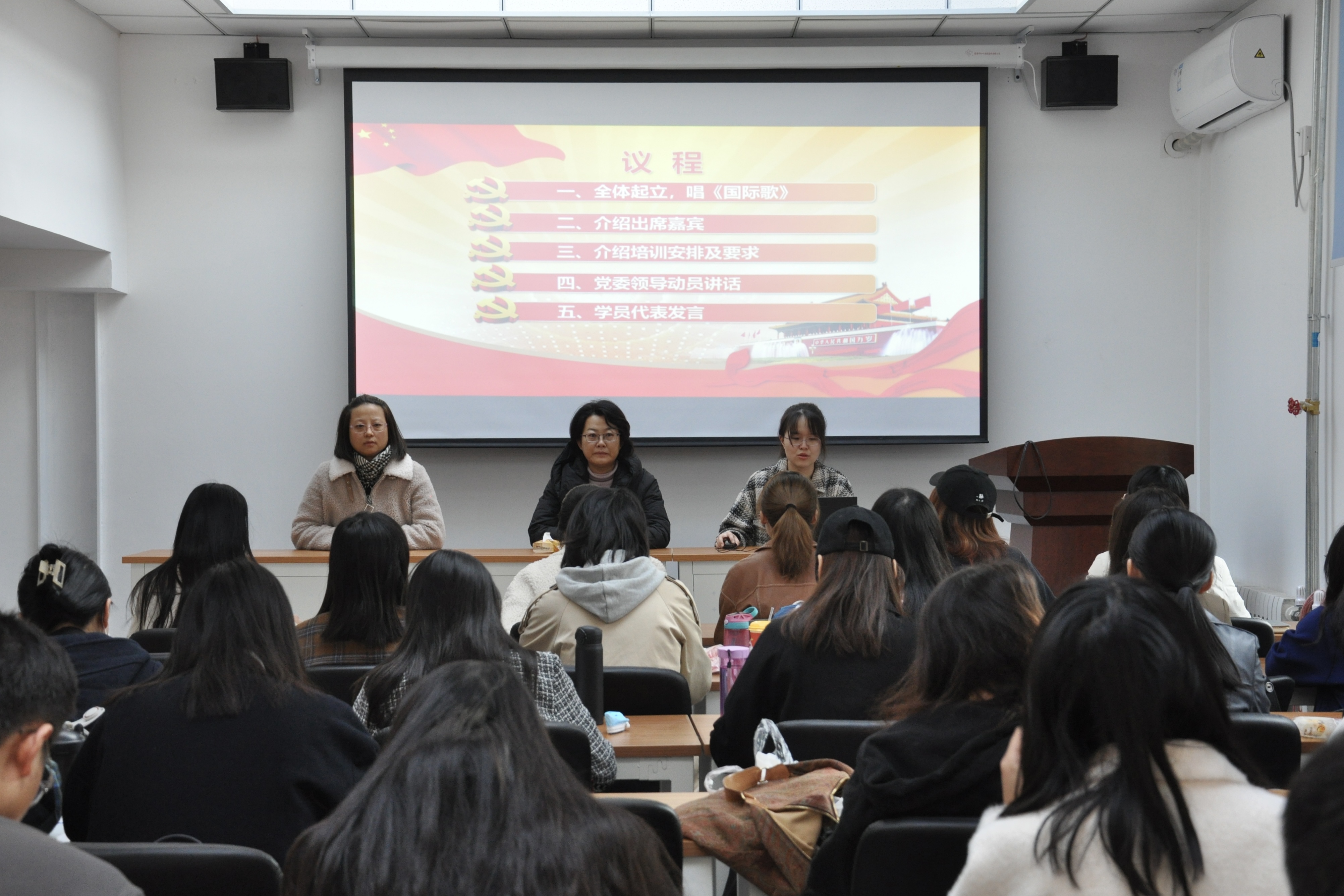 10月23日,性爱片 分党校在向阳办公区2111室召开第82期党课发展对象培训班开班仪式。马克思主义学院党委副书记、副院长田永静、团委书记刘慧敏出席了仪式,第82期34名发展对象参加了仪式,仪式由20级硕士生党支部书记杜玉中主持。