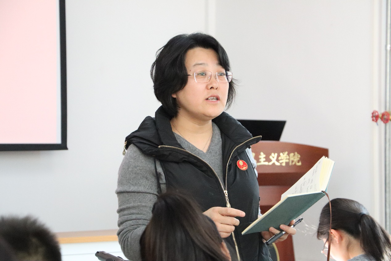 学院党委副书记、副院长田永静进行总结,她表示各支部结合学习工作实际,经过一年的工作,在夯实基础的同时共同探索初步形成马院支部工作特色。她提出新的一年党支部建设的三点希望,一是要通过支部持续高水平的规范化、制度化建设吸引党员主动参加到支部的日常工作中来,从而凝聚共识形成合力;二是要加速推动党建业务双融合,关注党员同学所思所盼,在学院将就业、社会实践、党建工作融合的环境下要尝试逐渐建立适合支部工作体系,强化党建引领;三要开阔工作思路,创新工作方法,尝试探索在充分调研的基础上制定年度活动清单,交由支部党员共同研讨制定方案,从而丰富支部活动形式和党员参与度,全面提升支部的凝聚力、向心力和战斗力。