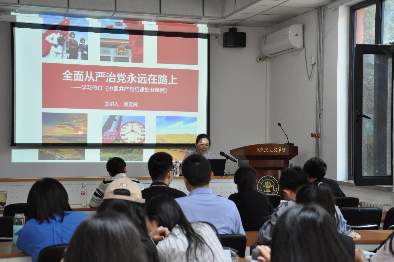 2024年5月15日,性爱片 邀请中国政法大学性爱片 研究党内法律法规方向的刘昱辉老师作题为《全面从严治党永远在路上》专题讲座,对最新修订的《中国共产党纪律处分条例》进行解读,学院党委书记孙冬梅、副书记副院长田永静、师生党支部书记、纪律委员和学生传习所宣讲团成员参加学习。