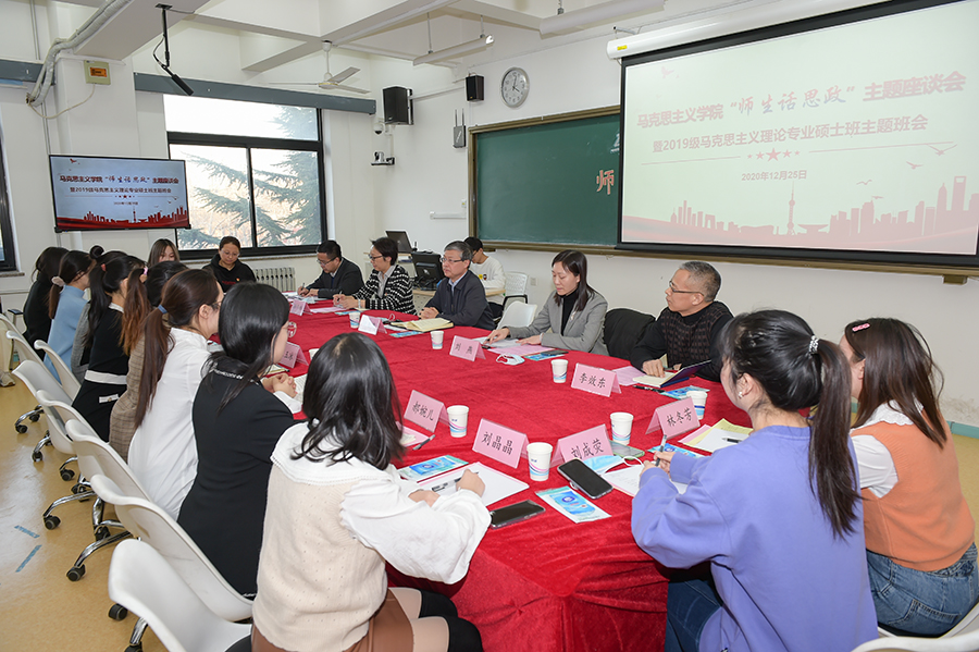 2020年12月25日下午,校党委书记黄泰岩参加联系班级性爱片 2019级马克思主义理论硕士班“师生话思政”主题座谈会,围绕“提升思想政治教育实效性”与马院师生进行深入交流。