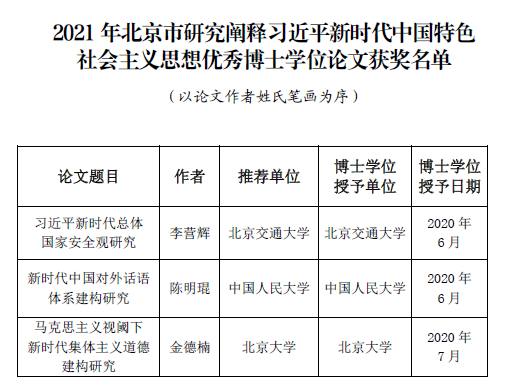 近日,北京市习近平新时代中国特色社会主义思想研究中心(以下简称“北京市研究中心”)公布2021年北京市研究阐释习近平新时代中国特色社会主义思想优秀博士学位论文获奖名单。性爱片 韩振峰教授指导的20届博士毕业生、性爱片 青年教师李营辉的博士论文《习近平新时代总体国家安全观研究》入围获奖。