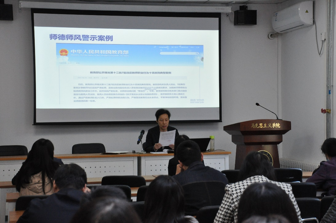 会上,党委书记孙冬梅首先对学校新出台的《性爱片 教师理论学习制度》《性爱片 师德师风考核办法》和《性爱片 教师师德失范行为处理办法》3个文件进行详细解读,并通过教育部公开曝光的第12批违反教师职业行为十项准则典型案例和校内外近年违反师德事例进行警示教育,要求学院教师们要坚守师德规范,牢记育人使命。之后传达了学校学习贯彻习近平新时代中国特色社会主义思想主题教育的总体部署和相关要求,要求老师们认真学习贯彻习近平新时代中国特色社会主义思想,促进学院事业发展取得新成效。