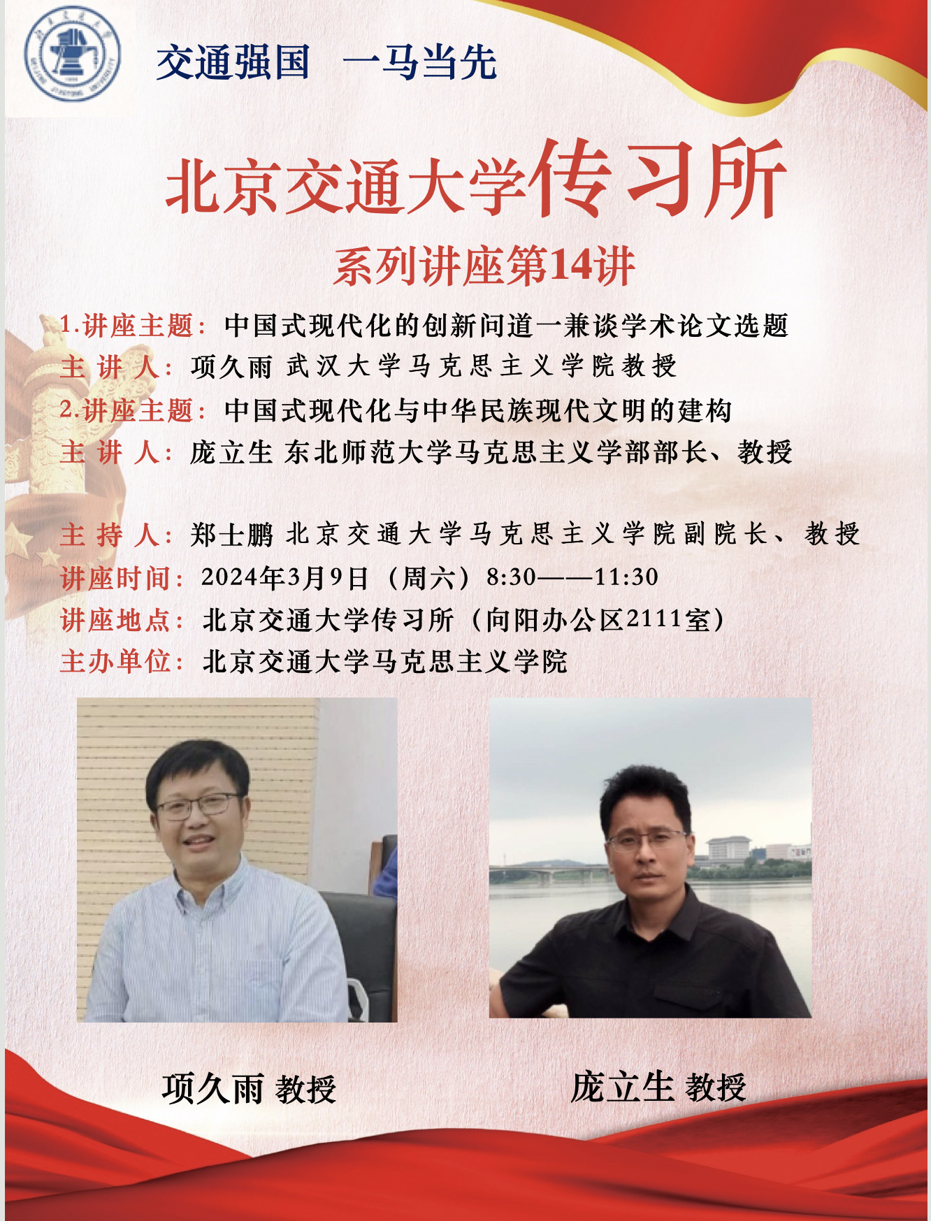 讲座预告 | 中国式现代化的创新问道——兼谈学术论文选题;中国式现代化与中华民族现代文明的建构